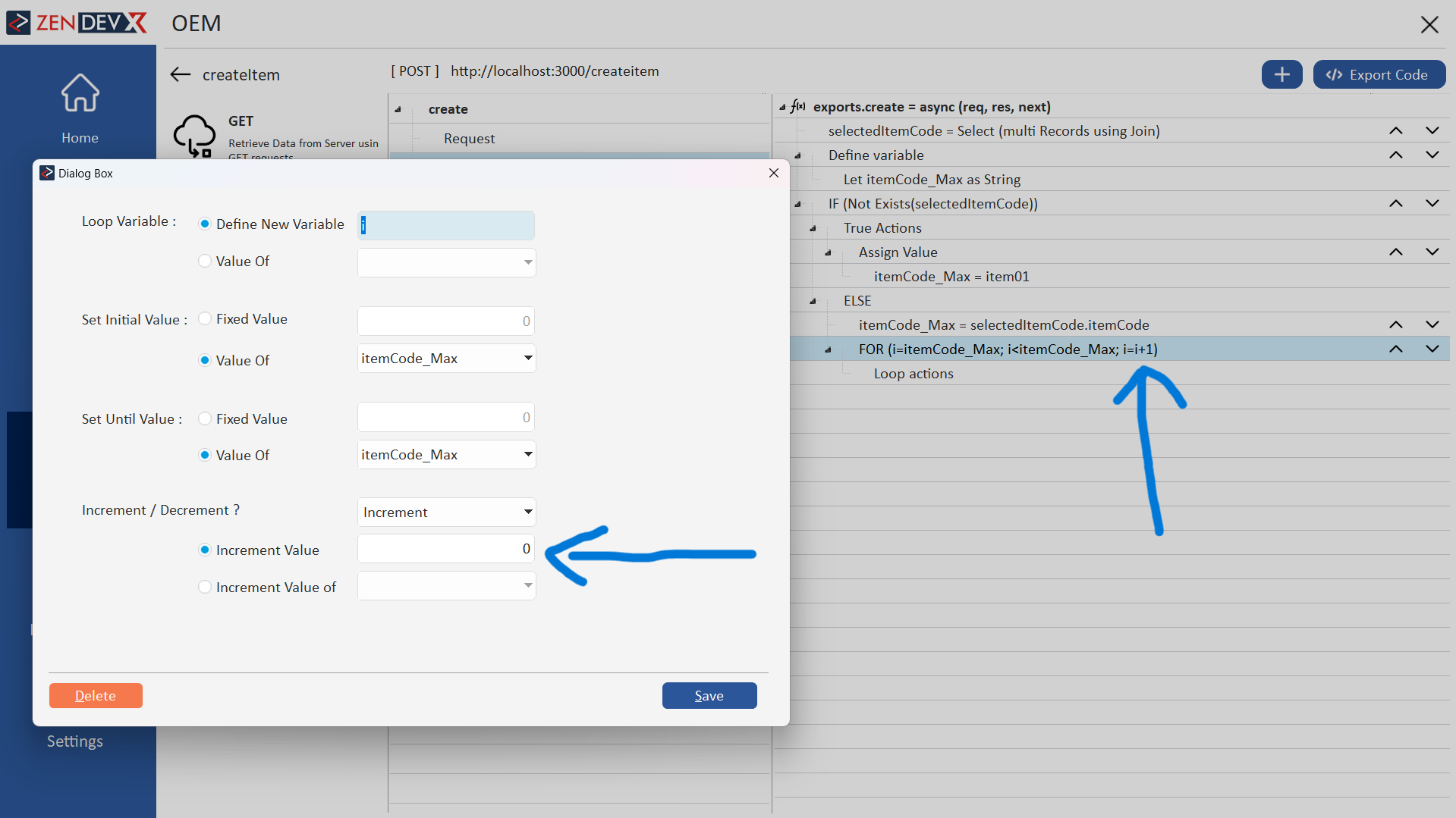 When i open the for loop in editing mode, increment value(fixed value) is became 0, i already set some value.