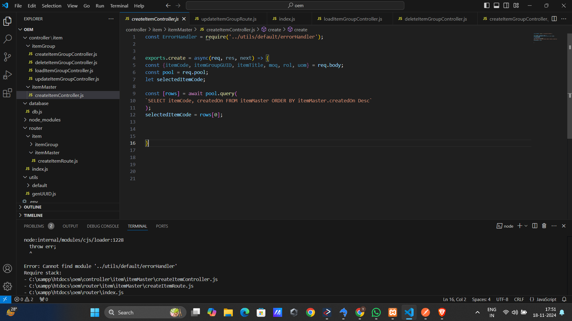 Ref : oem>controller>itemMaster>createItem
