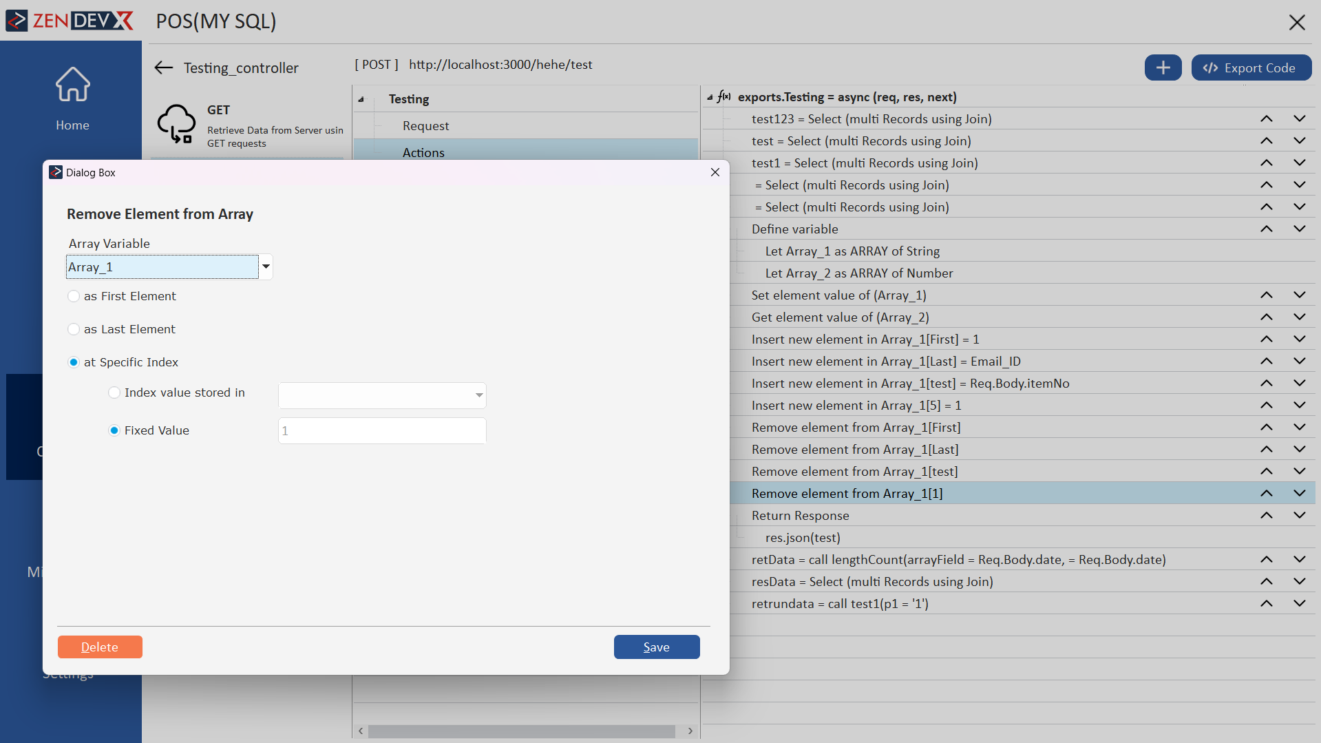 In Remove element array action,